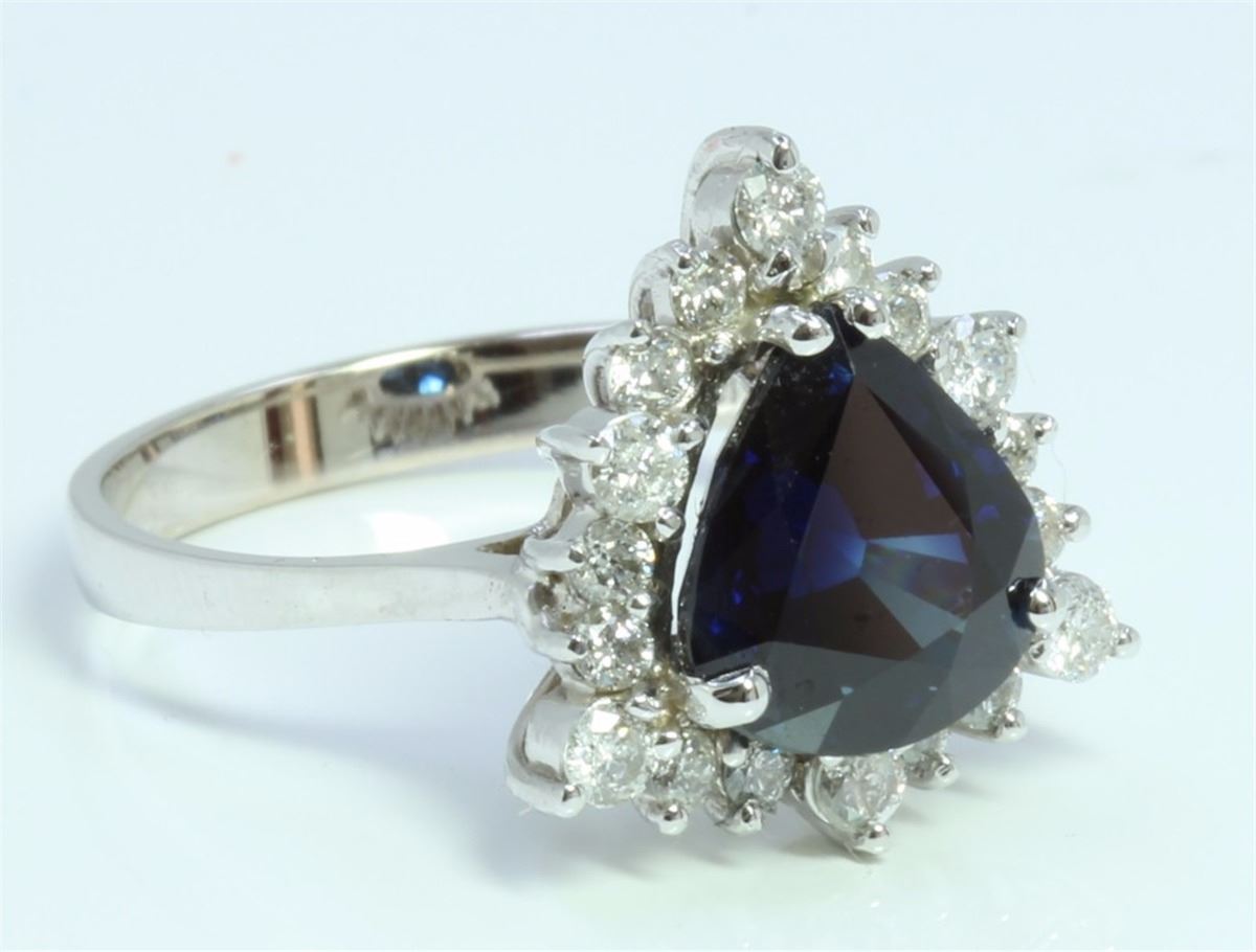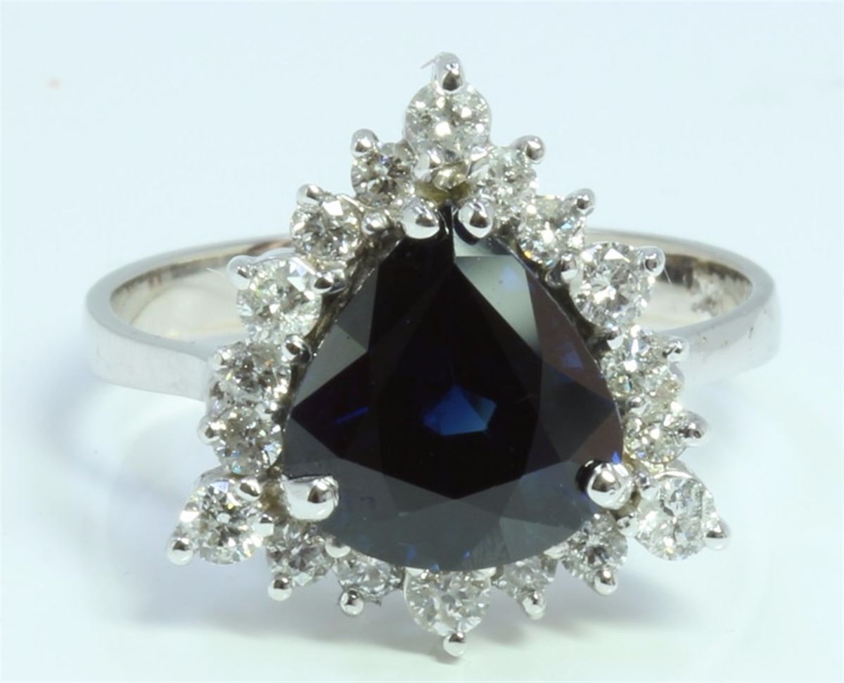 18K White Gold Ring 4.23gram with diamond 0.65ct / Sapphire Pear shape 4.00ct