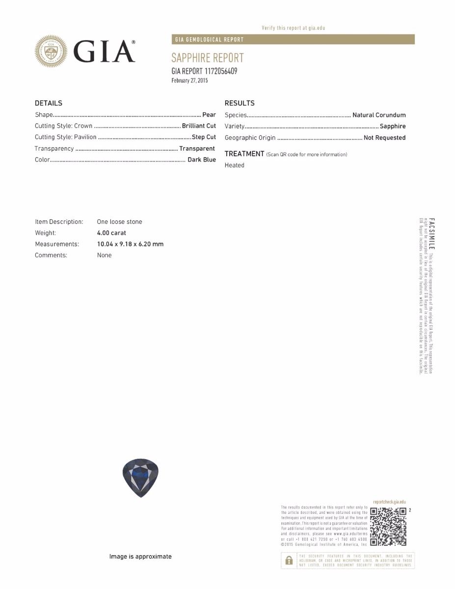 GIA CERTIFIED SAPPHIRE 4.00CT
