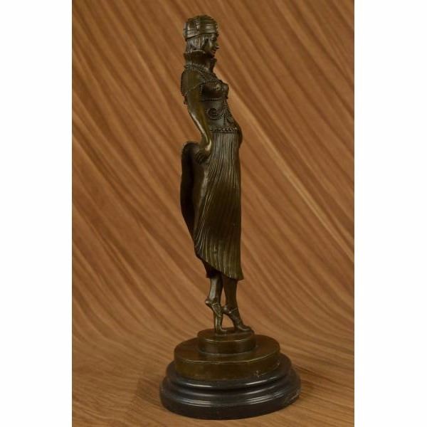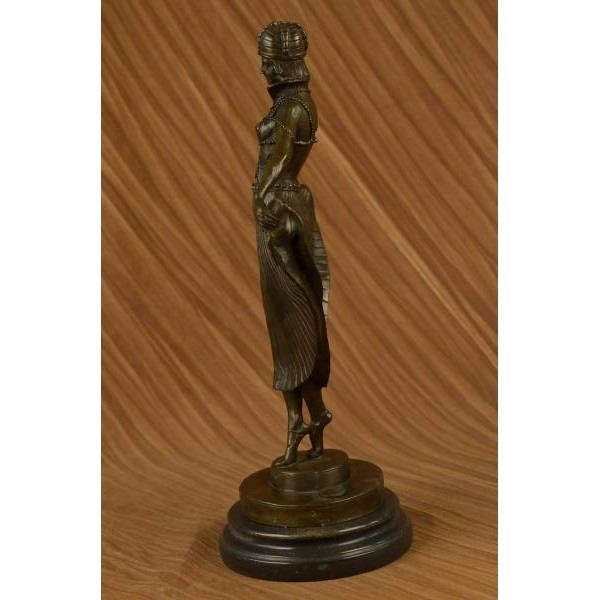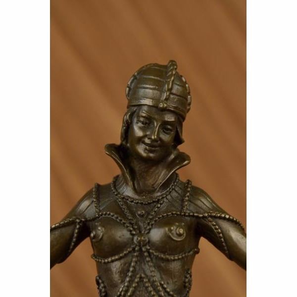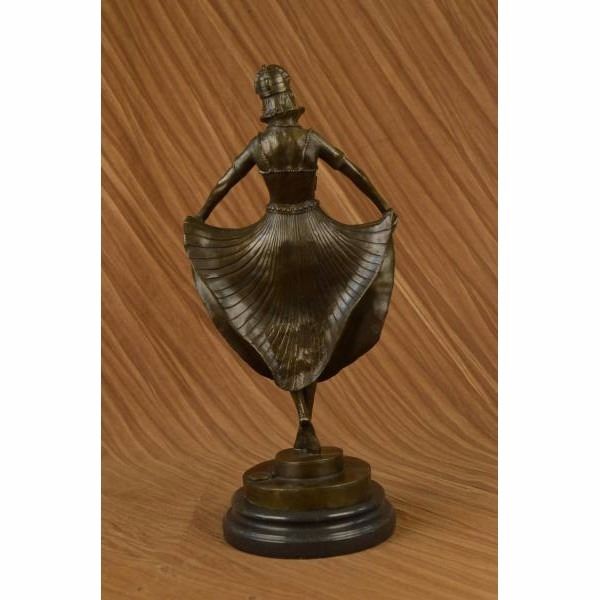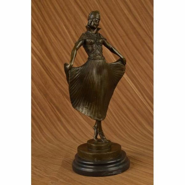 A fabulous bronze study of the Dancer 'Tera Guinob' from the "Spirit of Paris" at the Theater de la Madelaine between 1924 and 1925. The bronze has a wonderful gilded patination highlighted with enamel colors. Raised on a variegated brown bronze plinth and in a very good condition and is signed D.H. Chiparus. Condition: This sculpture is in perfect condition. Bronze Dimensions with Marble Base:Height 18" x Width 9" Marble Dimensions: Diameter 7" . Height without base: 17" Weight : 13 LBS Inventory 97X21086779