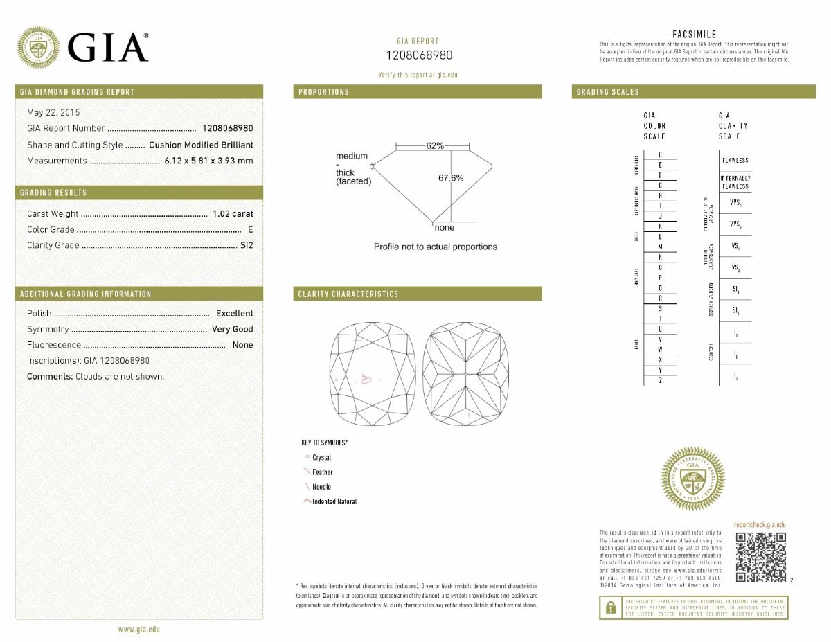 GIA/CUSHION/E/SI2/1.02ct/EX/VG/1208068980/#F44691