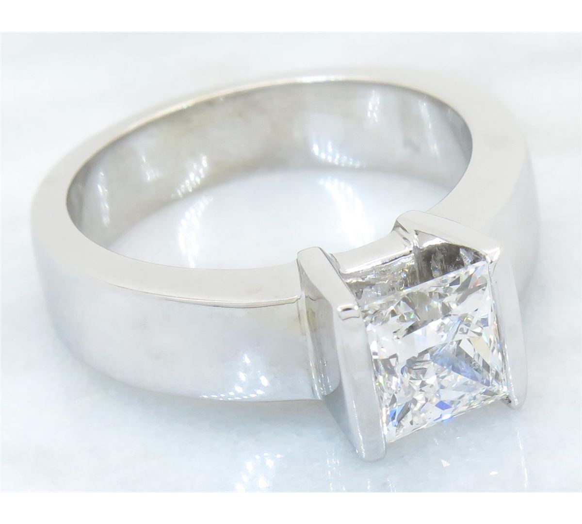 One tested 14K white gold diamond ring. Containing: One GIA Certified Princess Cut Diamond. Size: 1.29CT, Clarity: VS1, Color: D. All diamonds are graded in the mounting unless otherwise stated. Weight of ring: 7.9 grams, Size: 5.5. GIA Appraised.