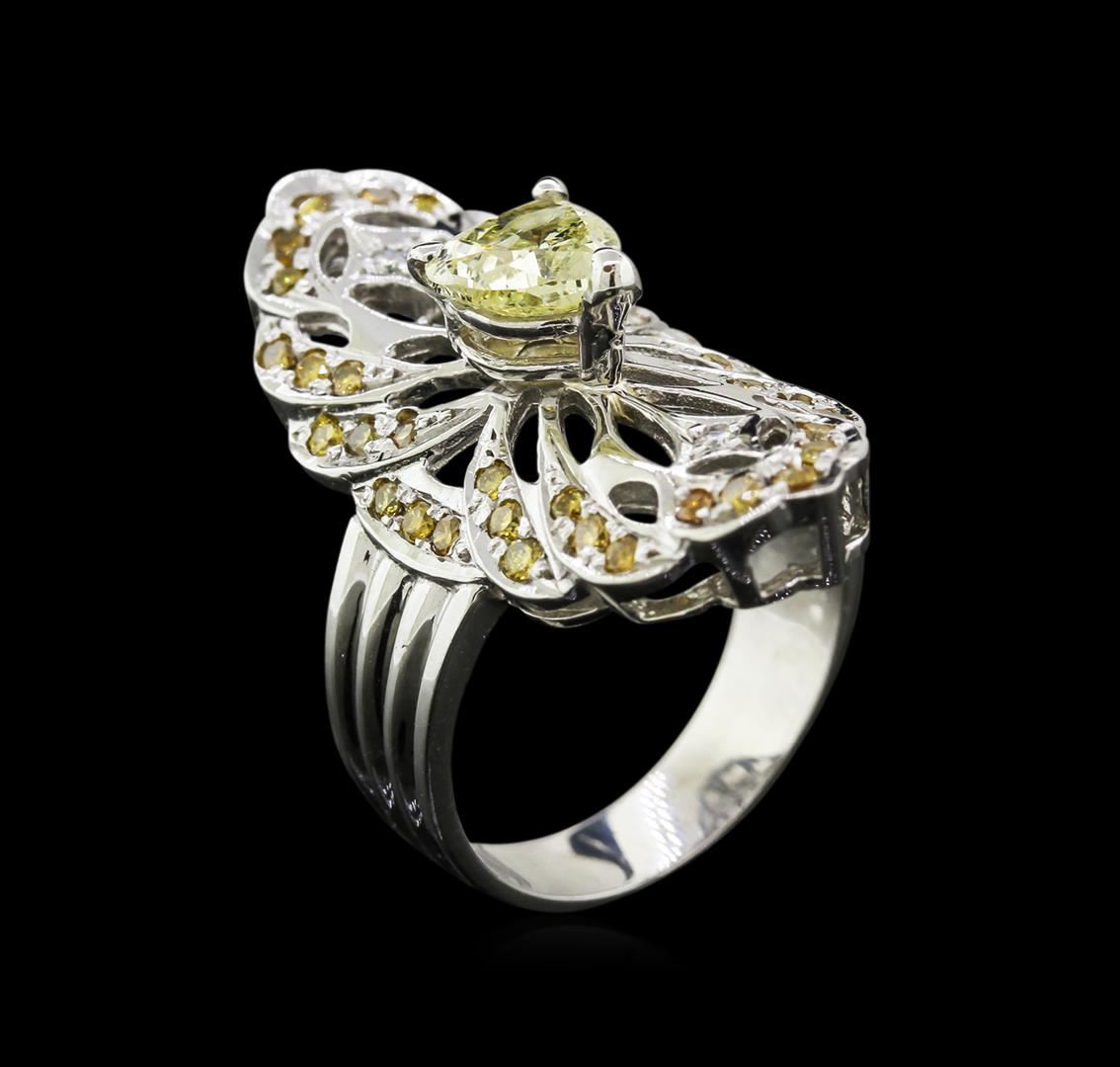One electronically tested 14KT white gold lady's combination cast & assembled fashion ring with a bright polish finish. The featured lady's ring has a shank measuring 4.40 millimeters wide. Identified with markings of "K14". Condition is new, good workmanship. Containing: One prong set heart shaped cut diamond, measuring 6.24 x 6.81 x 3.64mm (depth est.) , 10.00.%. GTCF approximate weight of 1.00ct. Graded loose prior to setting in the GIA Laboratory, Report #5141688116. Clarity: I-1 Cut Good Forty prong set round brilliant cut diamonds, measuring 1.50 - 1.30 x 0.91mm (depth est.) approximate total weight of 40 Stones = 0.45ct. Colored gemstones are presumed to have been subjected to commonly used enhancement processes. Graded in the setting. Clarity: SI-2 to I-1 Cut Good Two prong set round brilliant cut diamonds, measuring 1.50 - 1.45 x 0.96mm (depth est.) approximate total weight of 2 Stones = 0.03ct. Graded in the setting. Clarity: SI-1 to SI-2. Color: H - I. Cut Good. Total Weight of Diamonds 1.48ct. Total Weight of Ring 6.70gm. GAS Appraised at $10,370.00.