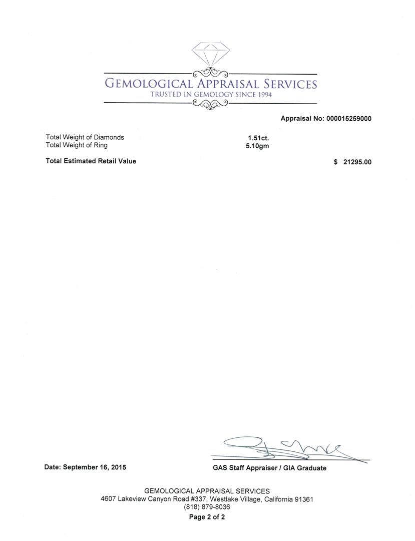 Regarding Appraised Jewelry, Watches and Loose Stones –