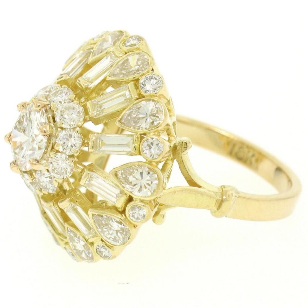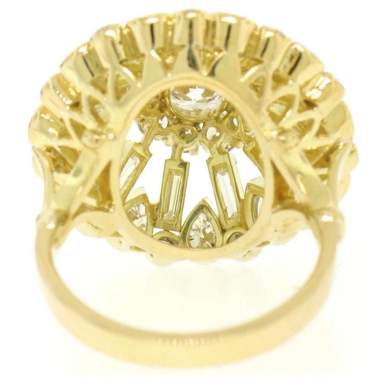 One GIA Cert 18K Yellow Gold 5.56ctw Round & Baguette Diamond Waterfall Cluster Ring. Item Details: Material: 18k Solid Yellow Gold, Weight: 9.70 Grams, Stone(s): (1) Natural Genuine Diamond - Prong Set - *See Certification Details Below*, (11) Natural Genuine Diamonds - Baguette Cut - Bar Set - G/H Color - VS1/VS2 Clarity - 1.54ctw (approx.), (11) Natural Genuine Diamonds - Pear Cut - Bezel Set - G/H Color - VS1/VS2 Clarity - 1.98ctw (approx.), (22) Natural Genuine Diamonds - Round Brilliant Cut - Bezel and Prong Set - G/H Color - VS1/VS2 - 1.20ctw (approx.), Total Carat Weight: 5.56ctw (approx.), Ring Size: 6.50 One Ring Width: 22.0mm in diameter. Ring Height: 11.60mm rise off the finger: Condition: Excellent condition! GIA certified center stone w/ certification., Certification Details, Laboratory: GIA, Report Number: 5161773975, Stone Type: Diamond, Stone Shape: Round Brilliant, Carat Weight: 0.84, Dimensions: 6.21 x 6.31 x 3.64 mm Color: G Clarity: SI1 Cut Grade: Very Good Fluorescence: NONE