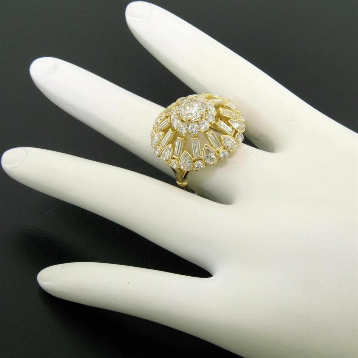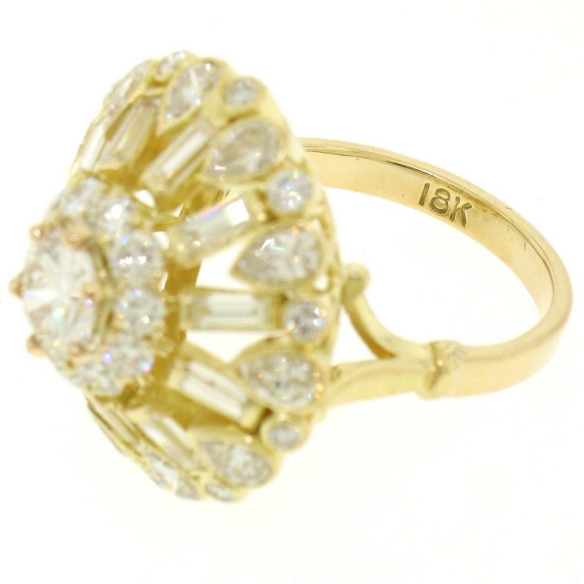 One GIA Cert 18K Yellow Gold 5.56ctw Round & Baguette Diamond Waterfall Cluster Ring. Item Details: Material: 18k Solid Yellow Gold, Weight: 9.70 Grams, Stone(s): (1) Natural Genuine Diamond - Prong Set - *See Certification Details Below*, (11) Natural Genuine Diamonds - Baguette Cut - Bar Set - G/H Color - VS1/VS2 Clarity - 1.54ctw (approx.), (11) Natural Genuine Diamonds - Pear Cut - Bezel Set - G/H Color - VS1/VS2 Clarity - 1.98ctw (approx.), (22) Natural Genuine Diamonds - Round Brilliant Cut - Bezel and Prong Set - G/H Color - VS1/VS2 - 1.20ctw (approx.), Total Carat Weight: 5.56ctw (approx.), Ring Size: 6.50 One Ring Width: 22.0mm in diameter. Ring Height: 11.60mm rise off the finger: Condition: Excellent condition! GIA certified center stone w/ certification., Certification Details, Laboratory: GIA, Report Number: 5161773975, Stone Type: Diamond, Stone Shape: Round Brilliant, Carat Weight: 0.84, Dimensions: 6.21 x 6.31 x 3.64 mm Color: G Clarity: SI1 Cut Grade: Very Good Fluorescence: NONE