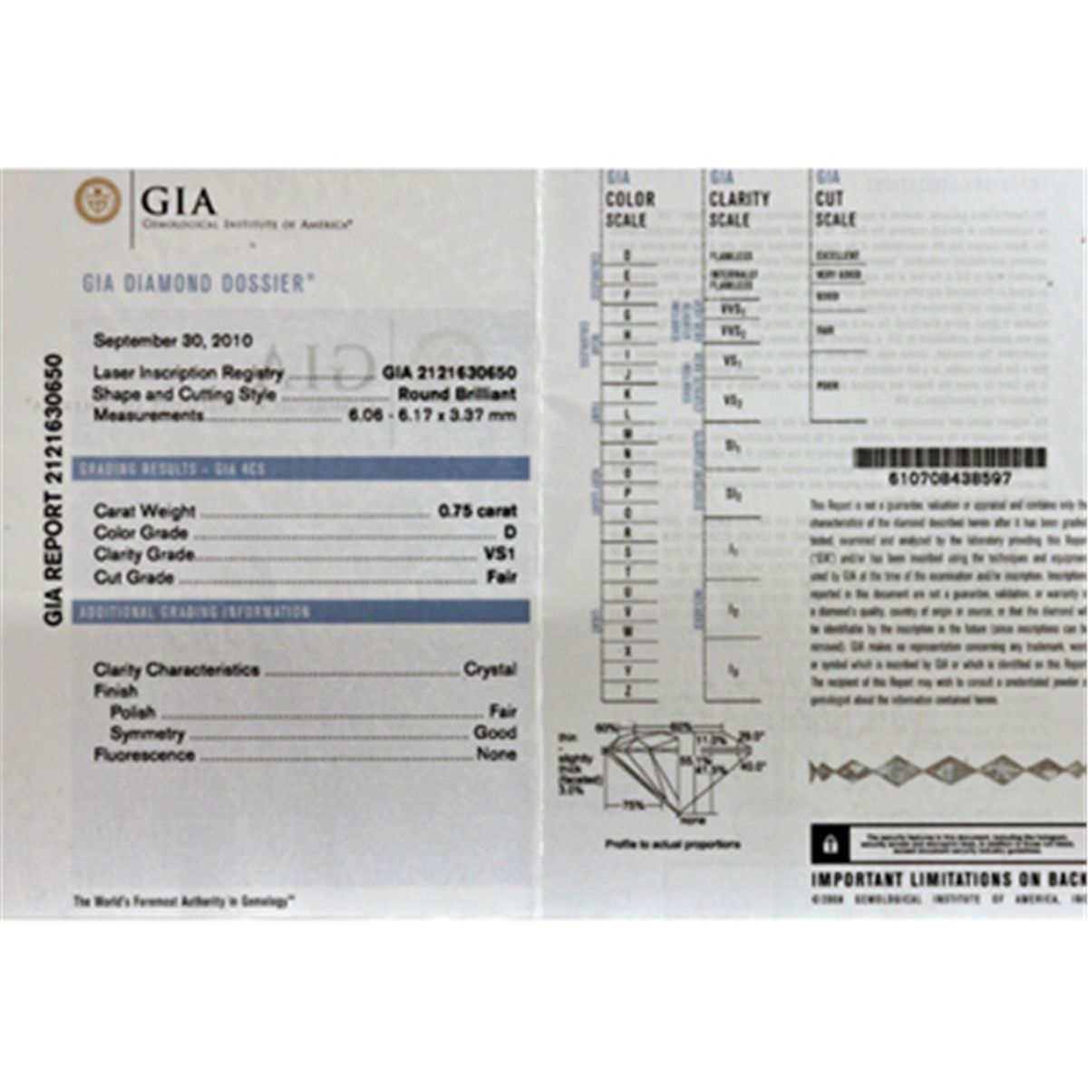 Jewelry Stone: Diamond ; Clarity: VS1 ; Color: D ; Total CTW: 0.75 ; Dia / CTW: 0.75 ; MSRP: $31878