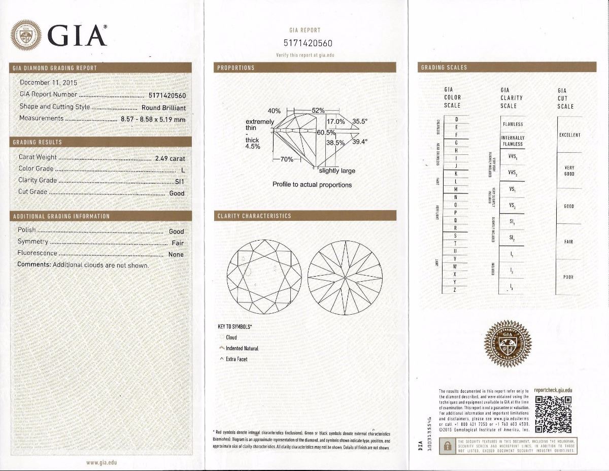 Beautiful GIA Certified Diamond set in brand new 4 prong platinum setting. Diamond is 2.49 ct, eye clean, SI-1 clarity, L color. Has amazing brilliance and scintillation. Size 6.5