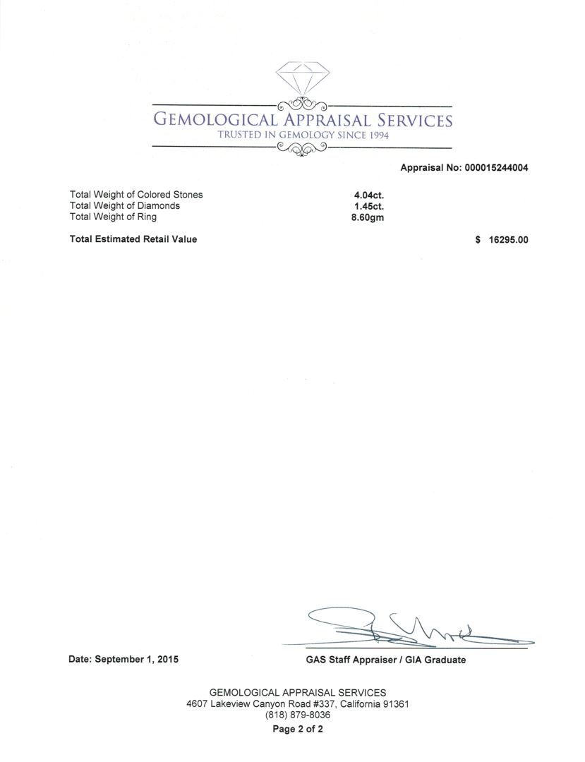 Not all Jewelry, watches or loose stones are appraised and the appraisals are provided for bidders only in certain instances at the discretion of SAA. Our appraisals are conducted by independent third-party appraisal firms. Such firms may be certified GIA Gemologists or have education in the industry or alternative certifications. Appraisals should be used for verification of gemstone and/or metal weight, size, and grade only, not actual value for resale or insurance purposes. Appraisal value should be not considered for actual value, as price varies greatly from retail locations and other merchants in different geographic locations. All Items auctioned by SAA should not be purchased with a view or expectation toward resale for appraisal price given, or to make a profit. The ultimate value for which an item can be resold may vary drastically from the appraisals listed by SAA.