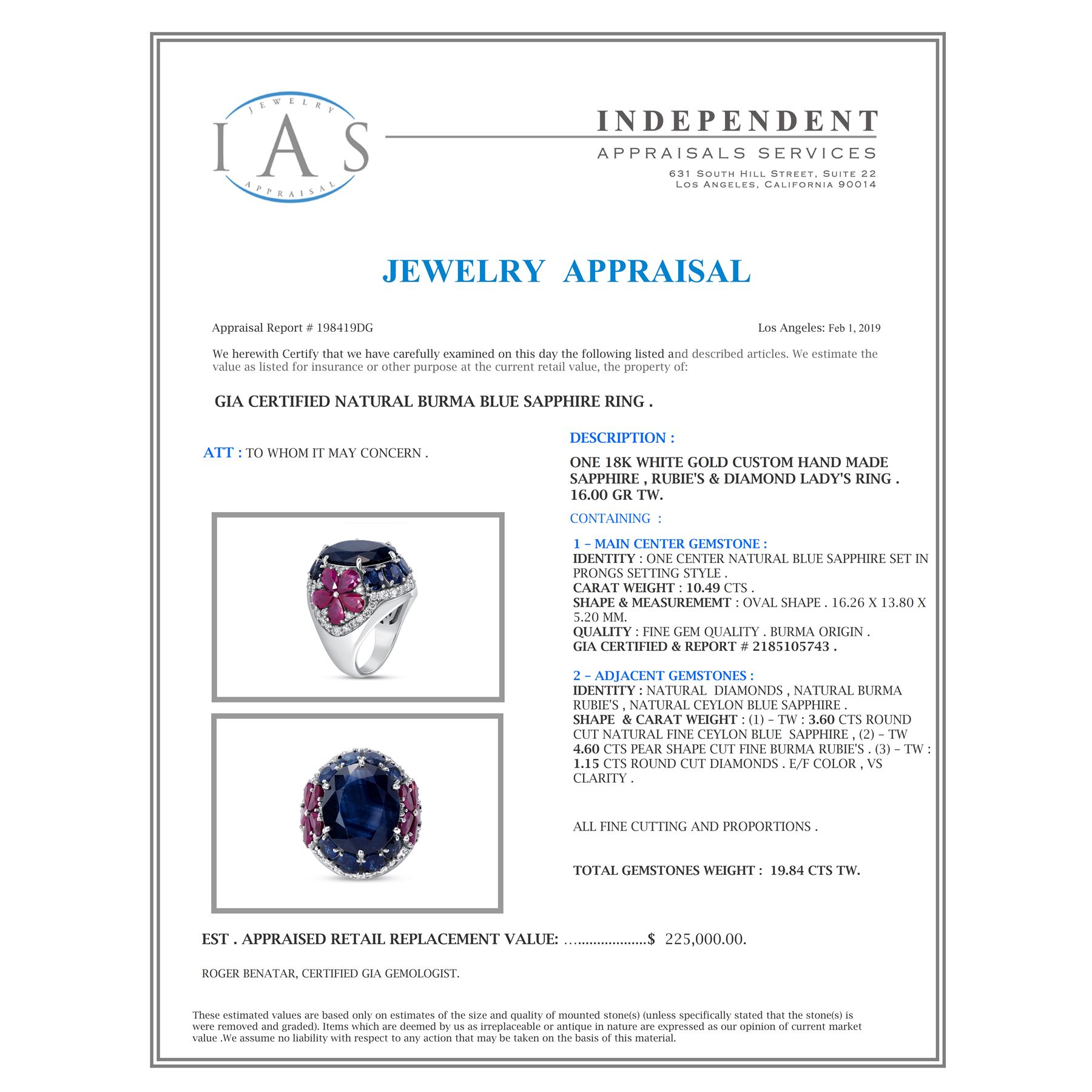 GIA Certified Natural Burma Blue Sapphire with Burma Ruby and Celyon Sapphire