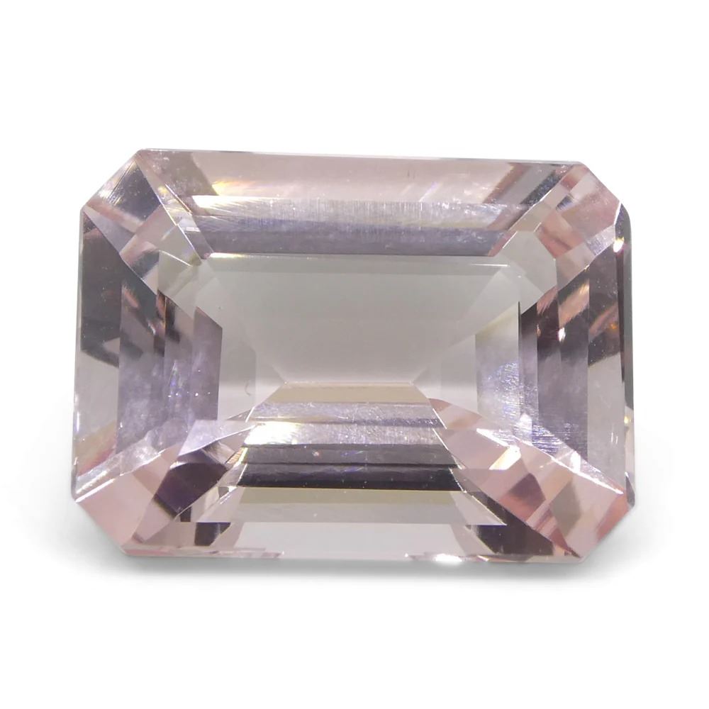 This Gorgeous Large 5.8 Ct VVs1 Natural Pink Morganite Is a Fine Emerald Cut measuring 13.47 x 9.97 x 6.41 mm. This Investment Grade Morganite has the highly desired pinkish orange hue along with full even saturation. Morganite is in the Beryl Family and is often referred to as the " RosePink Emerald". Treatment: None. Origin; Brazil. Please see the certification for further details.