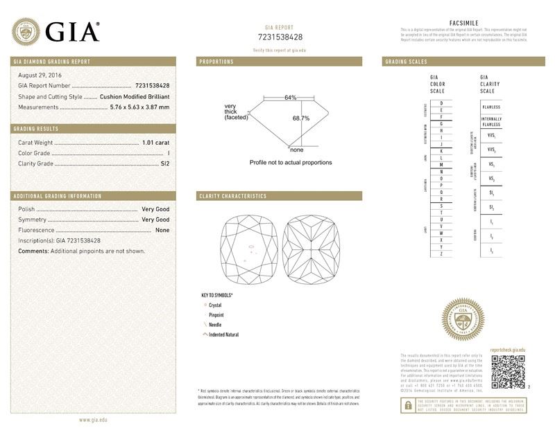 GIA/Cushion/I/SI2/1.01Ct/VG/VG/#7231538428/#F55615