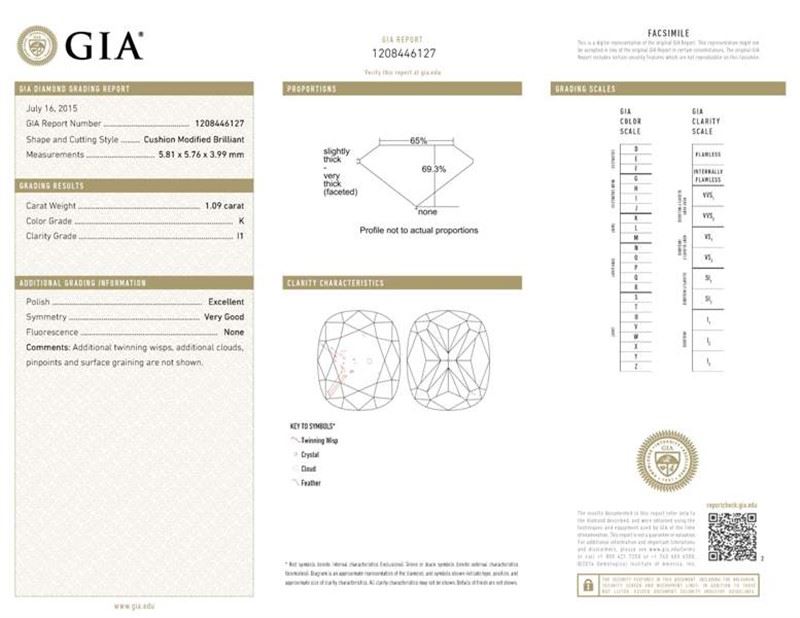 GIA/Cushion/K/I1/1.09Ct/EX/VG/#1208446127/#F28266