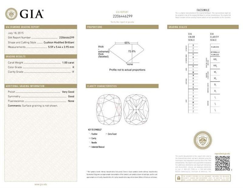 GIA/Cushion/K/I1/1Ct/VG/GD/#2206446299/#F28327
