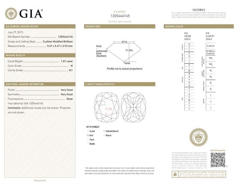 GIA/Cushion/M/SI1/1.01Ct/VG/VG/#1205446145/#F28381