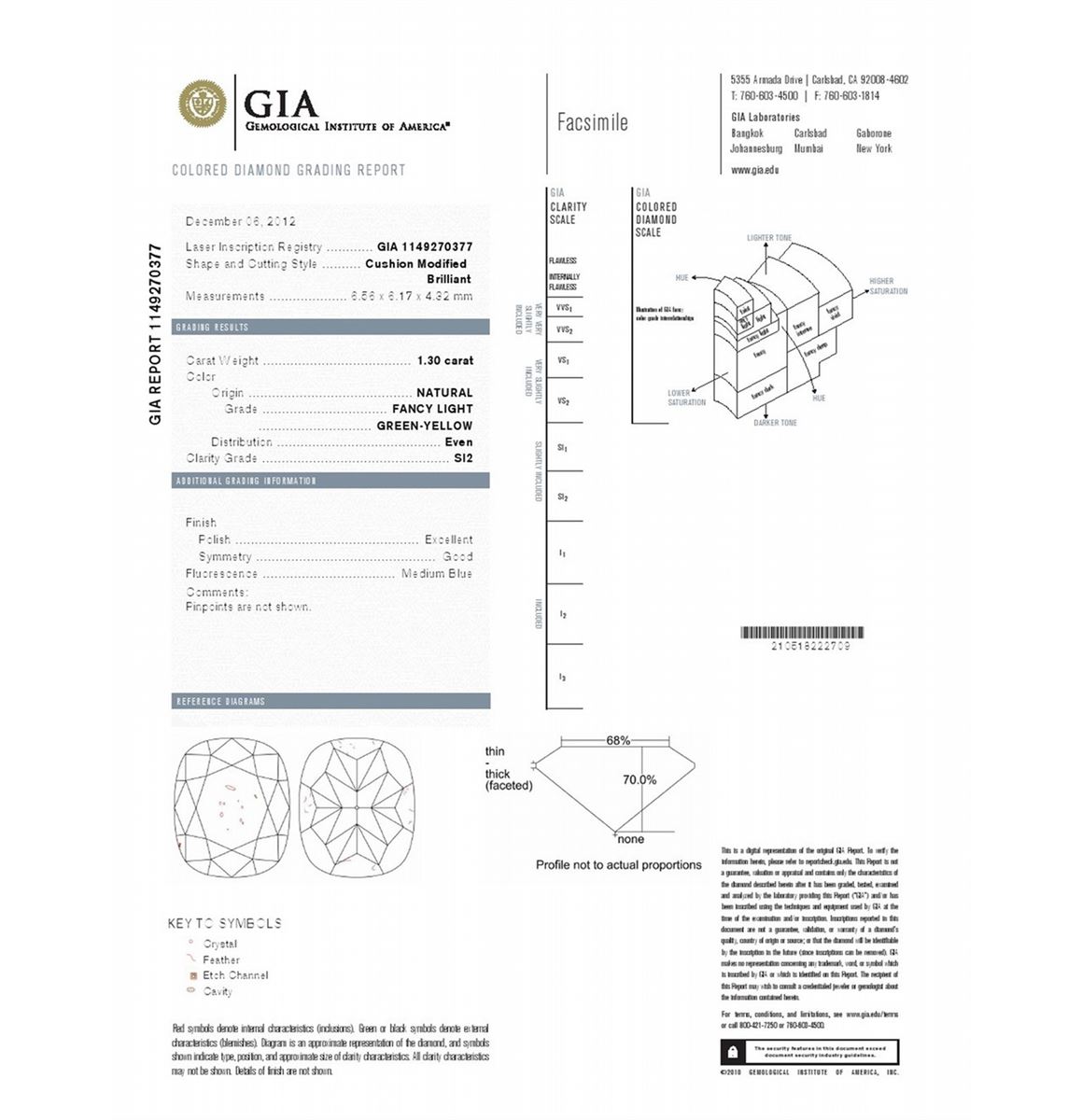 GIA/Cusion/FANCY-CLR/SI2/1.3/EX/GD/1149270377/#F29085