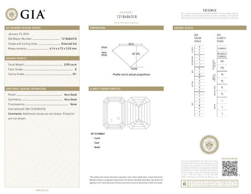 GIA/Emerald/E/SI1/0.9Ct/VG/VG/#1218484318/#F49342