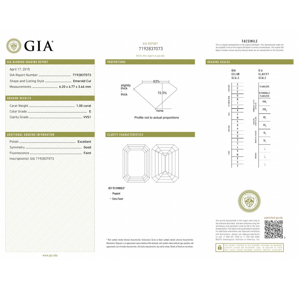 GIA/Emerald/E/VVS1/1Ct