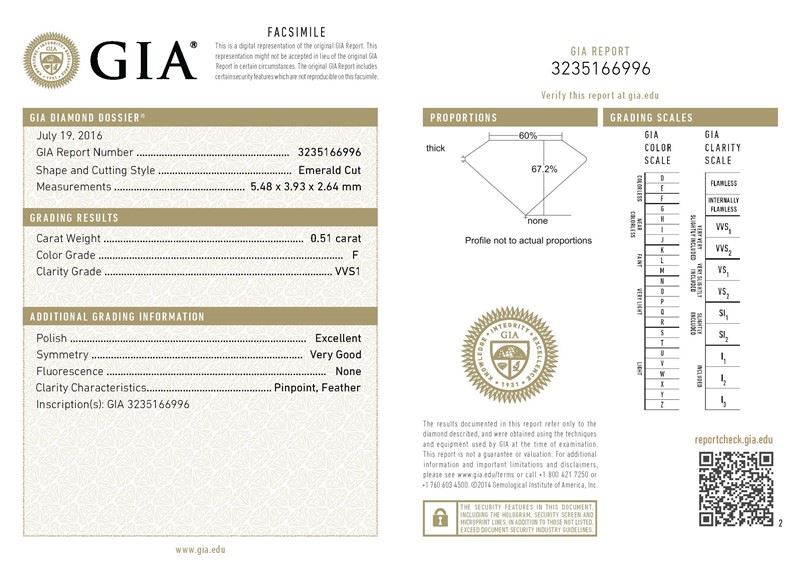 GIA/Emerald/F/VVS1/0.51Ct/EX/VG/#3235166996/#DF37045