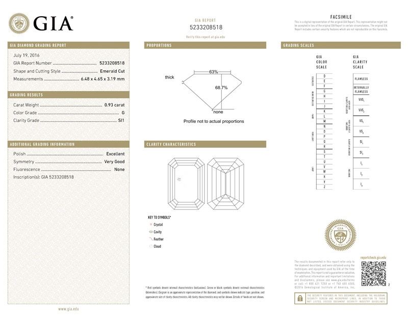 GIA/Emerald/G/SI1/0.93Ct/EX/VG/#5233208518/#F54361