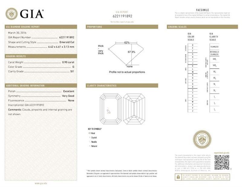 GIA/Emerald/G/SI1/0.9Ct/EX/VG/#6221191892/#F51184