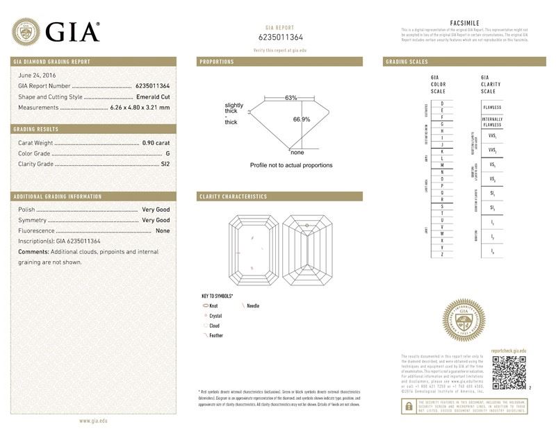 GIA/Emerald/G/SI2/0.9Ct/VG/VG/#6235011364/#F53575