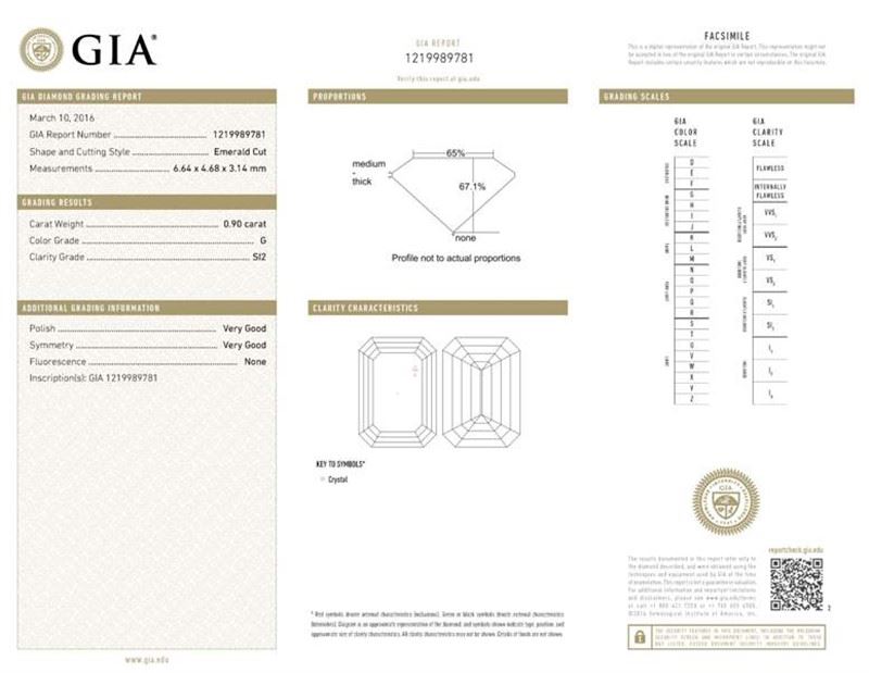 GIA/Emerald/G/SI2/0.9Ct/VG/VG/#1219989781/#F50676