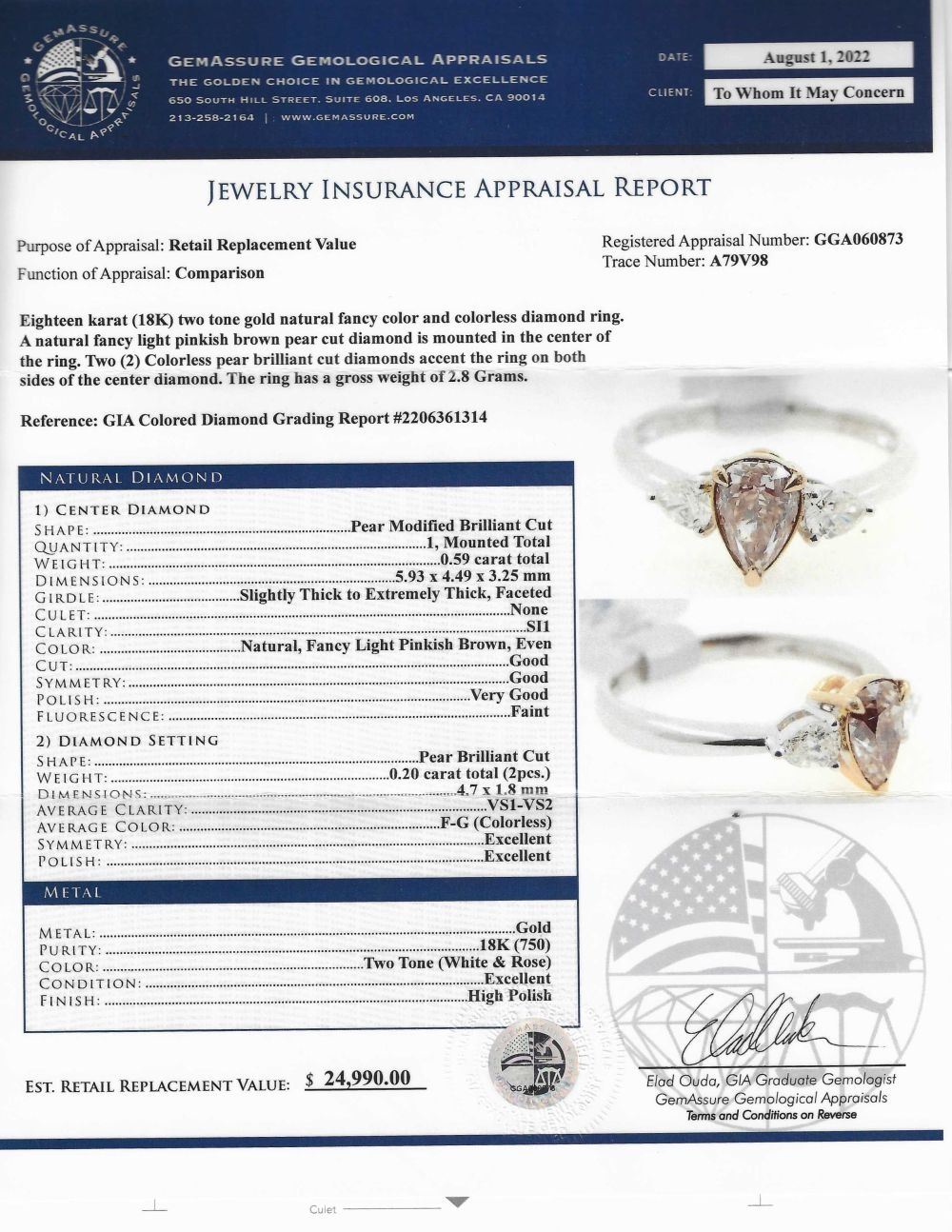 GIA Graded Fancy Colored Pear-Shaped Diamond Ring