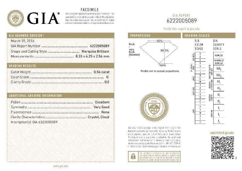 GIA/Marquee/G/SI2/0.54Ct/EX/VG/#6222005089/#DM35405