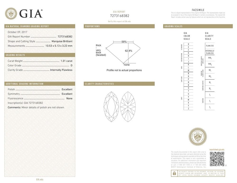 GIA/Marquise/D/IF/1.01ct/-/EX/EX/Dimension - 10.53 x 5.13 x 3.22/GIA# 7273168382/#M65470