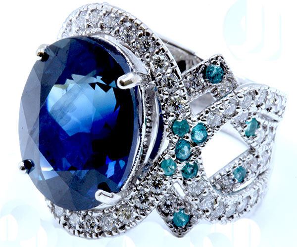 GIA Natural Sapphire & Paraiba Tourmaline 21.10 ctw (Hand Made Piece Very Rare)