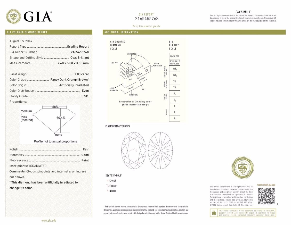 GIA/O/SI1/1.03Ct/7.60x5.88x3.55/F/G/#2165455768/#34688
