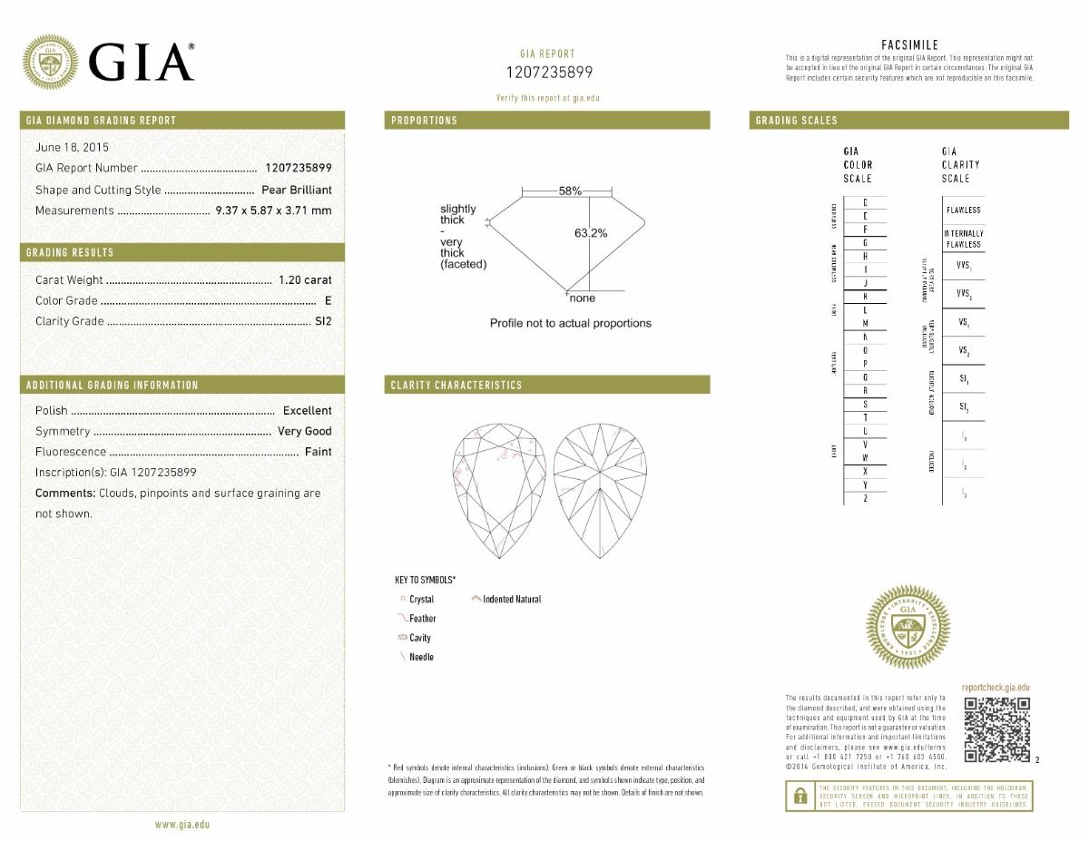 GIA/PEAR/E/SI2/1.2ct