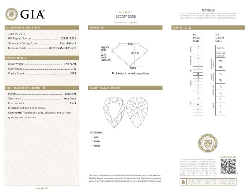 GIA/Pear/D/VVS2/0.9Ct/EX/VG/#5223910035/#P53269