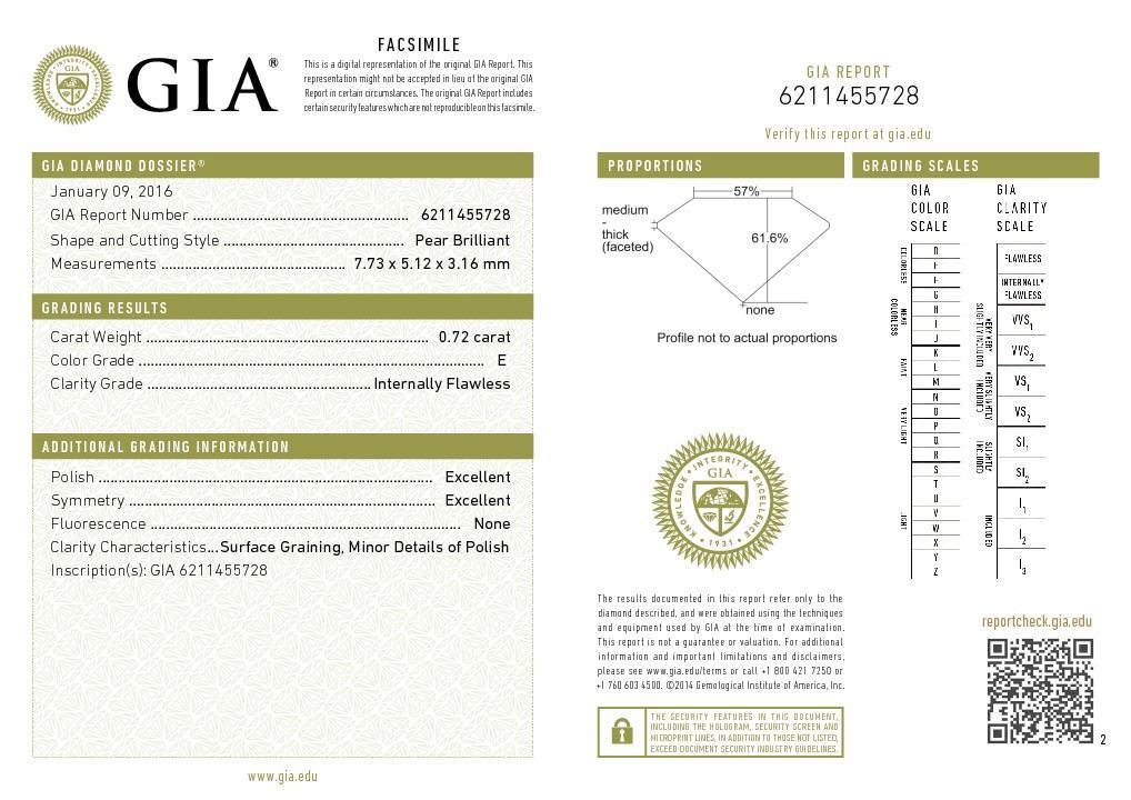 GIA/Pear Shape/E/IF/0.72ct