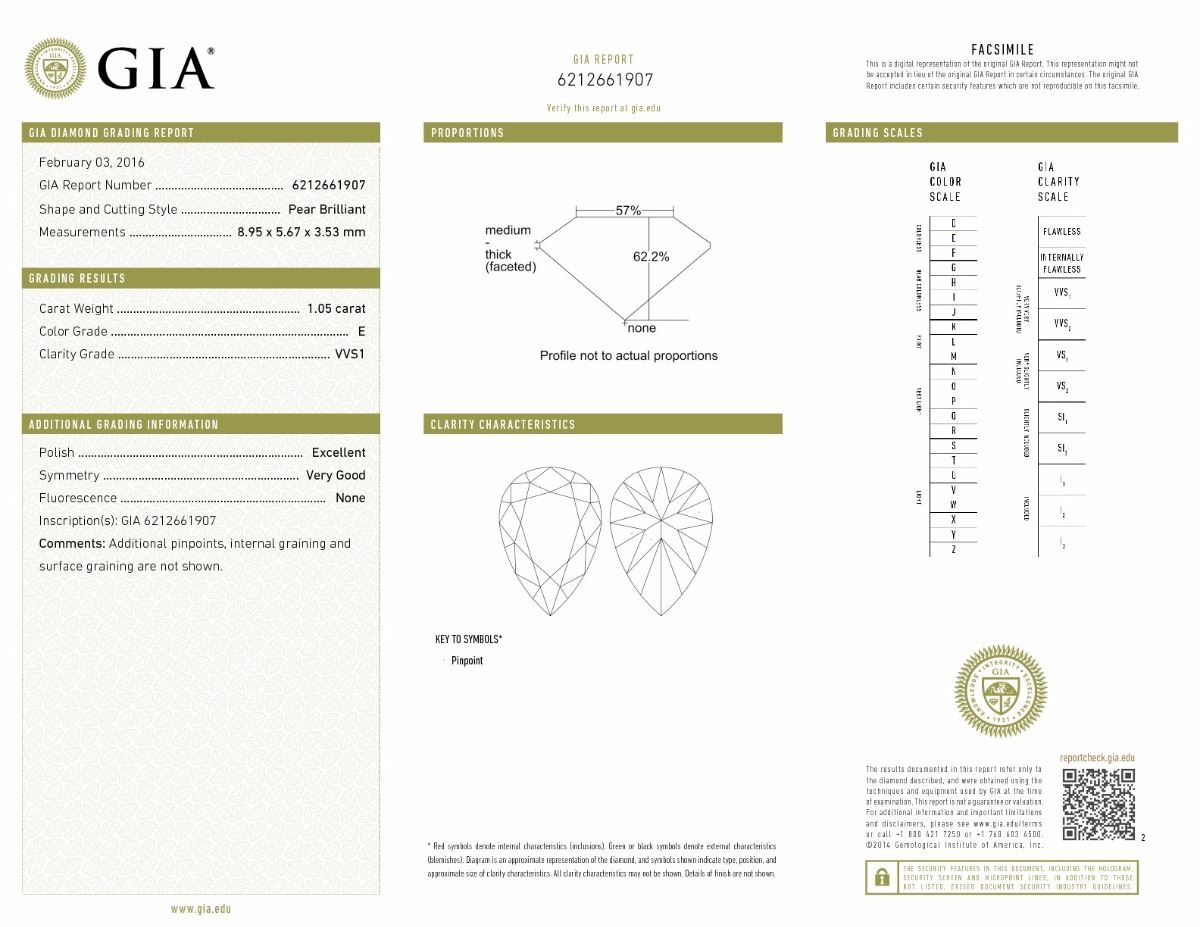 GIA/Pear Shape/E/VVS1/1.05ct/EX/VG/6212661907/#P49822