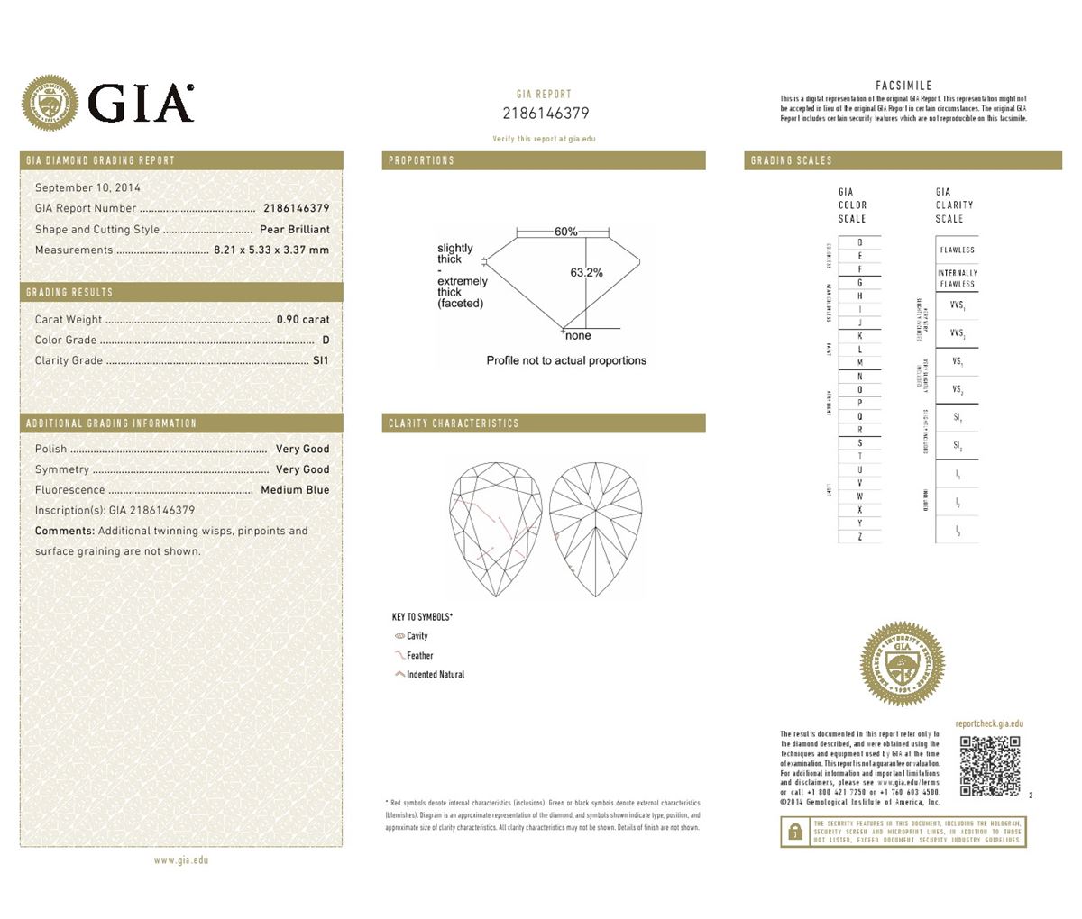 GIA/Pear shape/D/SI1/0.9