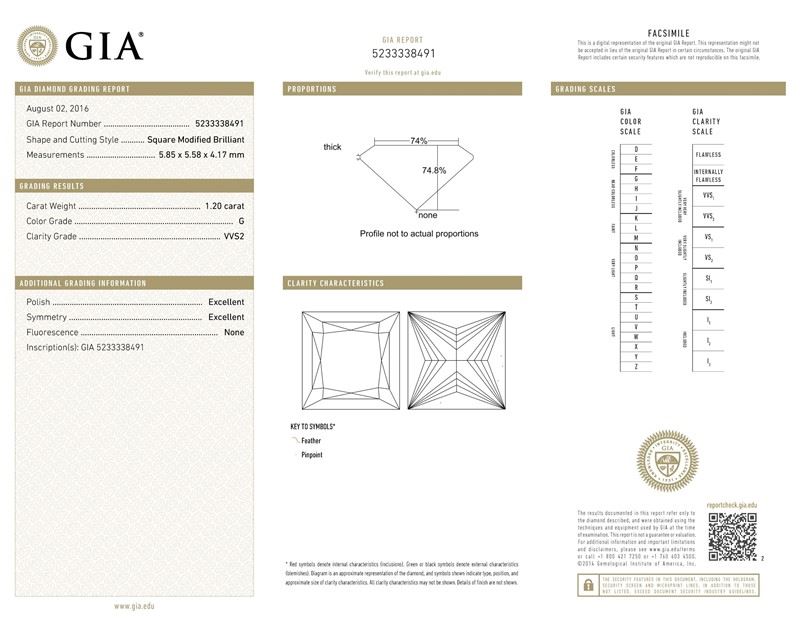 GIA/Princess/G/VVS2/1.2Ct/EX/EX/#5233338491/#S54859