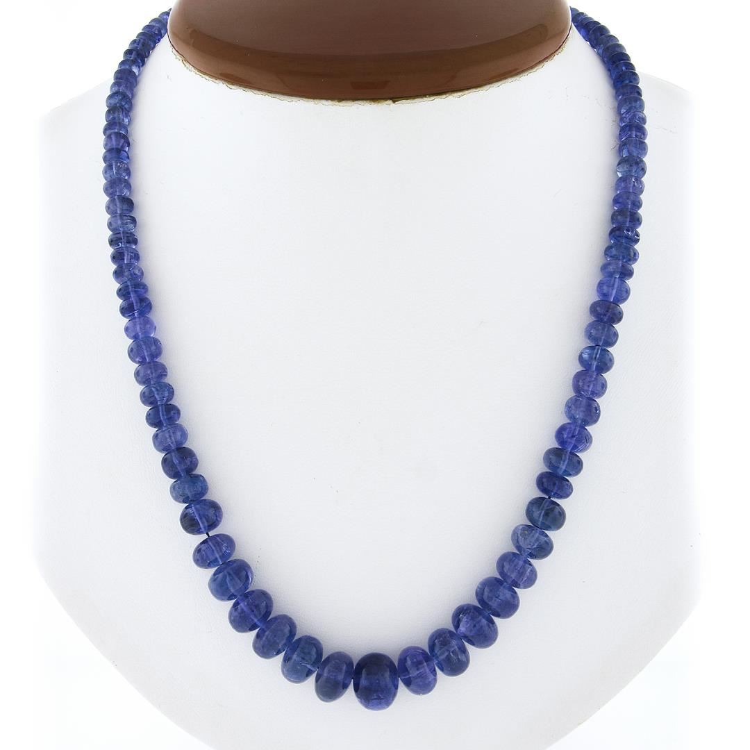 GIA Rondelle Beads Tanzanite Graduated Strand Necklace w/ 14k Gold Chain & Clasp