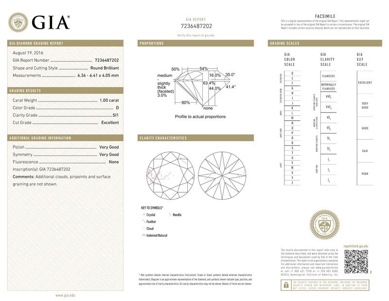 GIA/Round/D/SI1/1Ct/VG/VG/#7236487202/#R55380
