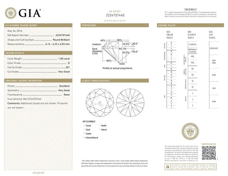 GIA/Round/D/SI1/1Ct/EX/VG/#2224757440/#R52835