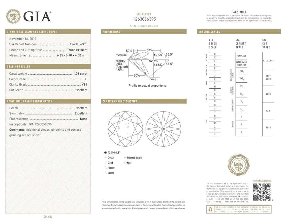 GIA/Round/D/VS2/1.01ct/EX/EX/EX/Dimension - 6.4 x 6.35 x 4/GIA# 1263856395/#R64488