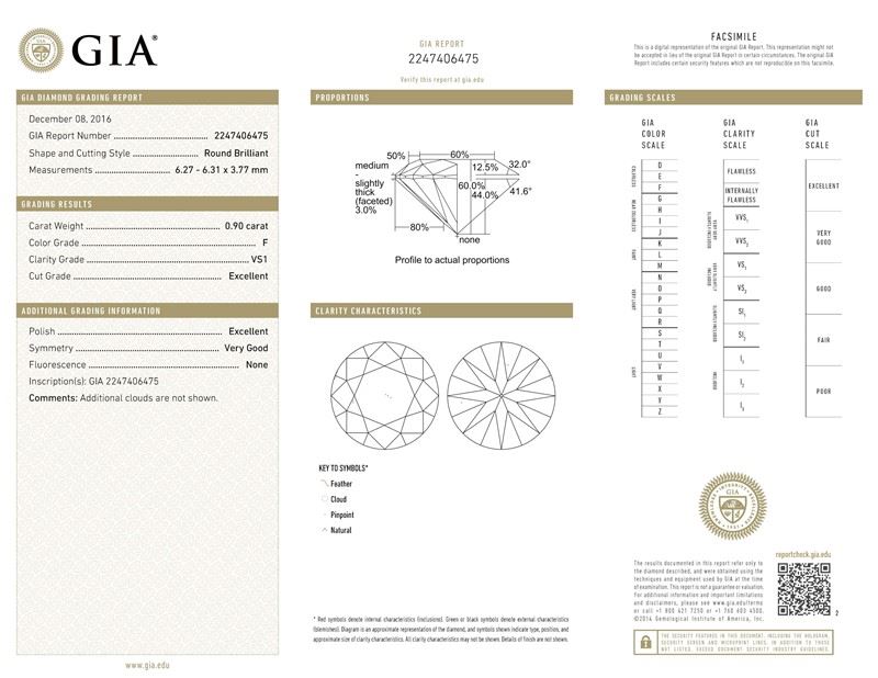 GIA/Round/F/VS1/0.9Ct/EX/VG/#2247406475/#R58124