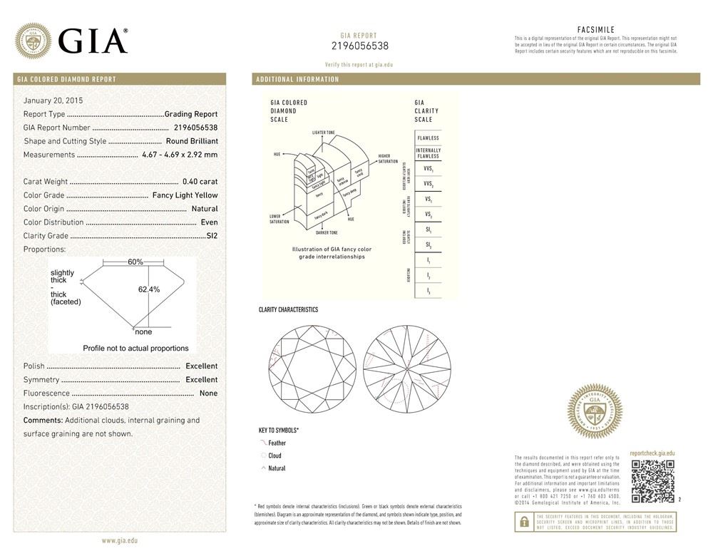 GIA/Round/FANCY-CLR/SI2/0.4ct/-/EX/EX/Dimension - 4.69 x 4.67 x 2.92/GIA# 2196056538/#DR29272