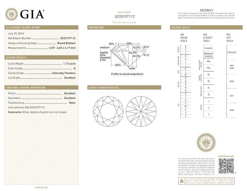 GIA/Round/G/IF/1.13Ct/EX/EX/#5233197112/#R54358
