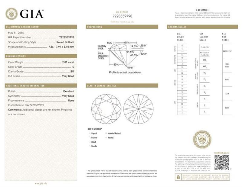 GIA/Round/G/SI1/2.01Ct/EX/VG/#7228559798/#R52286