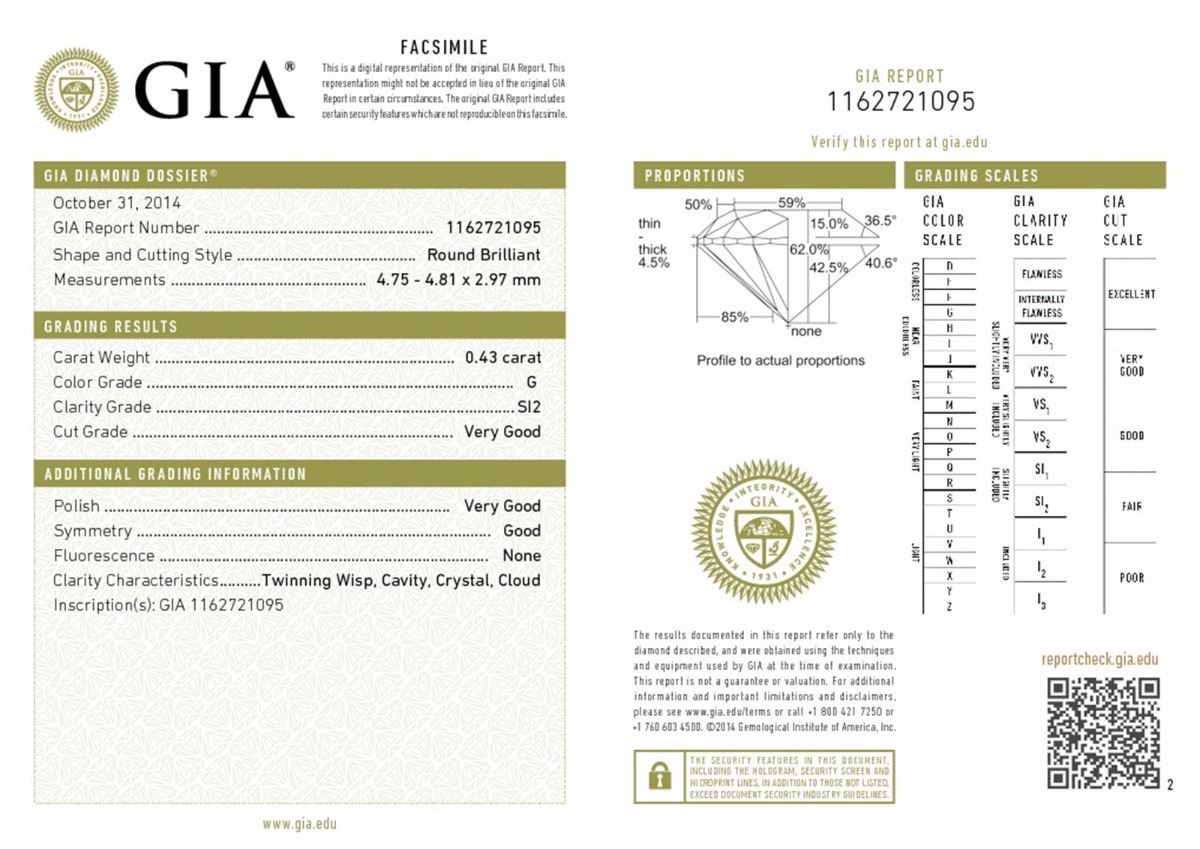 GIA/Round/G/SI2/0.43ct/VG/VG/1162721095/#SS-7981