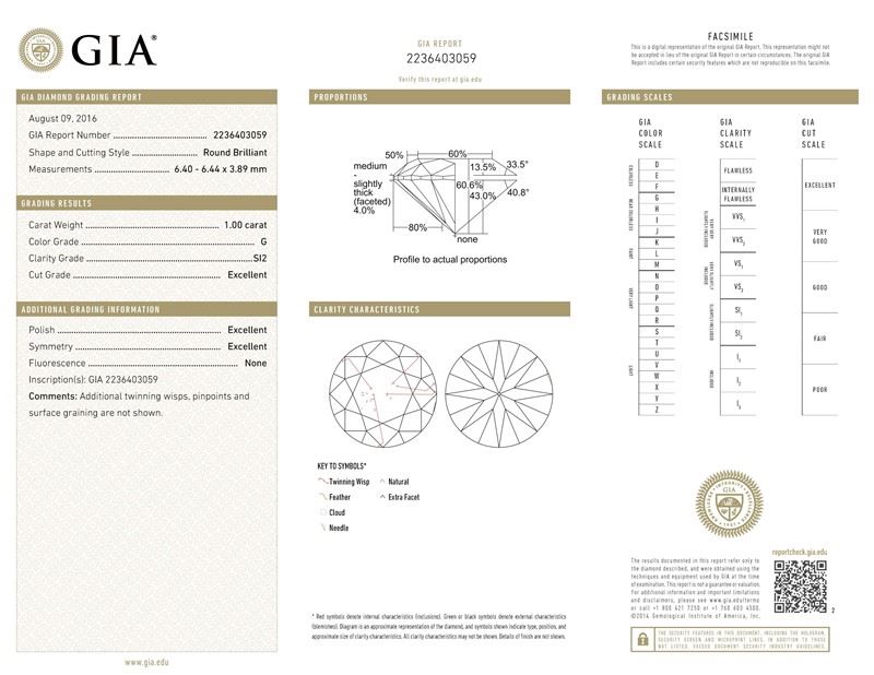 GIA/Round/G/SI2/1Ct/EX/EX/#2236403059/#R55084