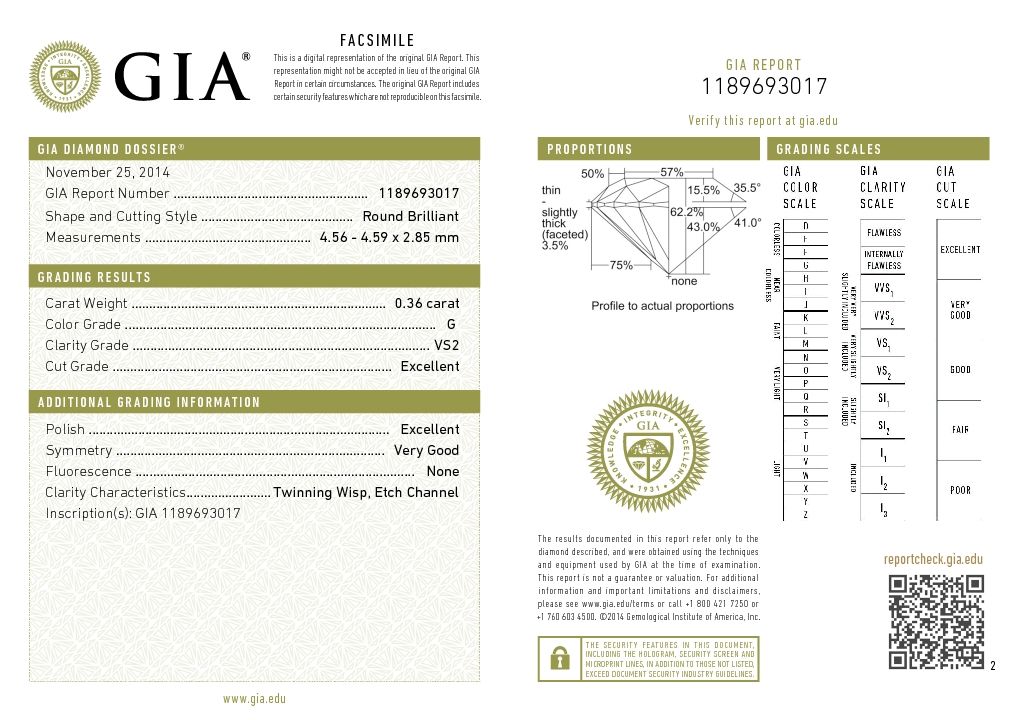 GIA/Round/G/VS2/0.36/EX/EX/VG/1189693017