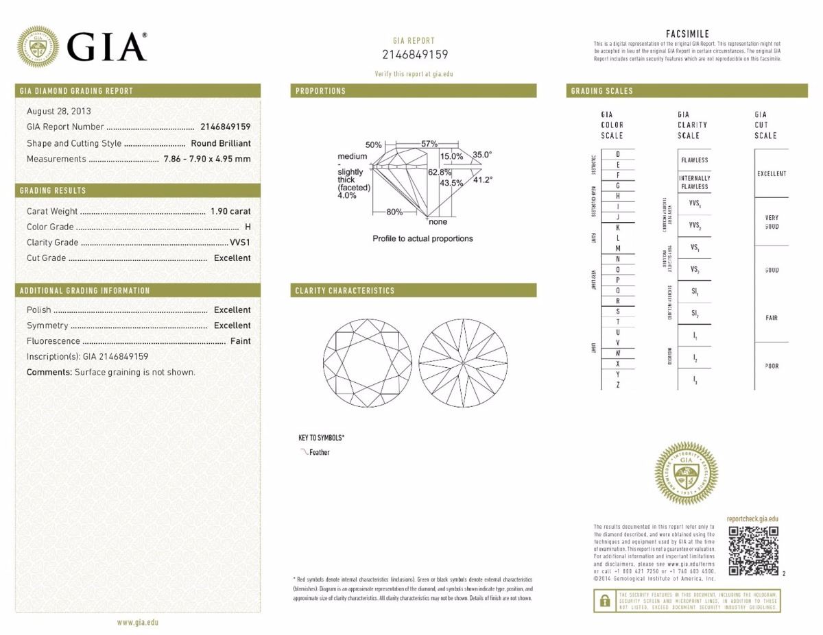 GIA/Round/H/VVS1/1.9ct/EX/EX/2146849159/#SS-6844