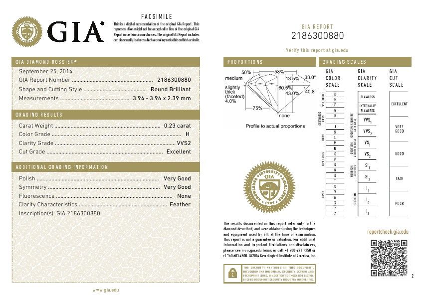 GIA/Round/H/VVS2/0.23/EX/VG/VG/2186300880